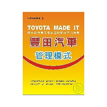 本書特色網友開箱介紹本書以豐田公司管理模式中最有特色的生產方式為基點,進一步把豐田管理模式分為:生產管理模式、產品研發管理模式、產品品質管制模式、經營改進模式、市場行銷管理模式、決策管理模式、文化理念管理模式,全方位剖析豐田獨特的管理理念、管理體制,從而力圖讓廣大讀者能夠從中領略到日巔峰企業的真實內幕,學習其中寶貴的管理知識。